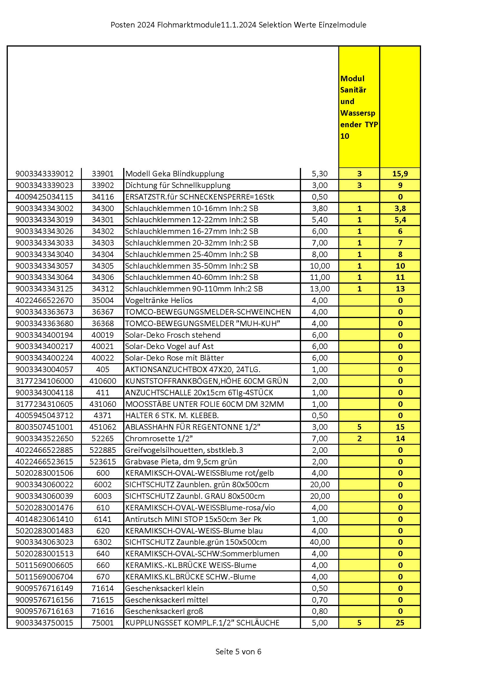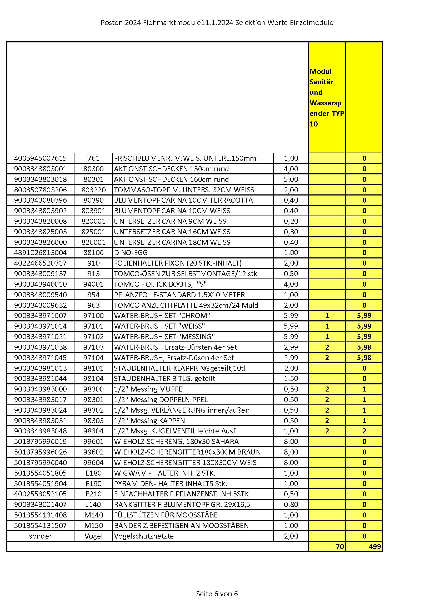 Summe Modul 10 70 Teile 499,00 exkl.Mwst.